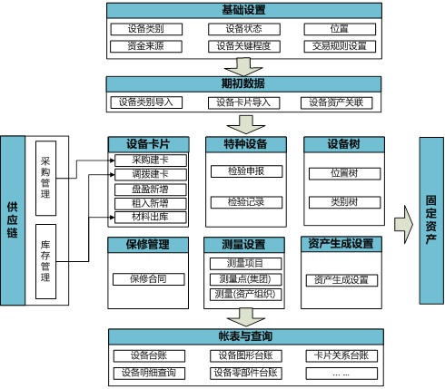 資產(chǎn)信息管理是以管理設(shè)備卡片為核心的應(yīng)用模塊,主要包括:管理設(shè)備卡片,各類設(shè)備臺賬以及提供特種設(shè)備、保修管理、測量設(shè)置、初始工具等相關(guān)業(yè)務(wù)管理;它是企業(yè)資產(chǎn)全生命周期管理的基礎(chǔ)。資產(chǎn)使用、運行、維修過程中的絕大部分業(yè)務(wù),都涉及對設(shè)備卡片進行相關(guān)信息的回寫,所以可以通過設(shè)備卡片了解設(shè)備整個生命周期的絕大部分信息。