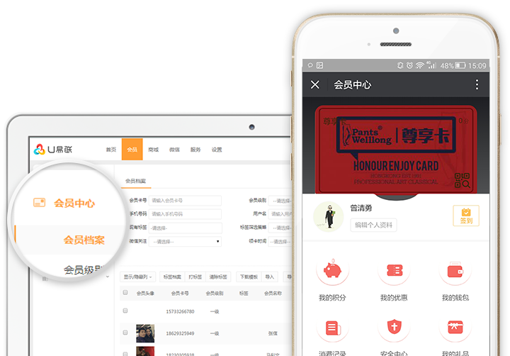 U易聯作為企業的會員管理平臺,不僅有會員卡管理、會員積分管理、連鎖門店會員管理、會員消費記錄管理,幫助企業實現會員數據化經營,了解終端消費者消費習慣及需求;還有微信營銷管理、微商分銷管理、微商城管理,幫助企業實現老會員的促活,新會員的引流與轉化,使新老會員形成消費習慣,產生粘性,擴大企業經營范圍。